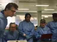 Haileybury College students lead preliminary testing for their 'Mircocavity' experiment. Left to right: Eddie Brelsford, Swinburne mentor Sara Webb, Reah Shetty, Katya Gvozdenko and Seniru Mudannayake.