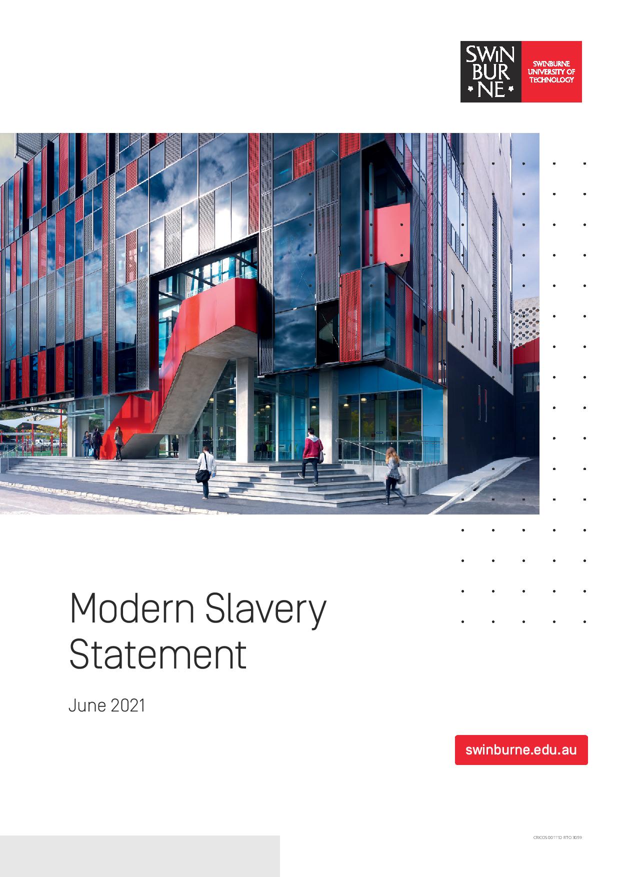 Swinburne is committed to taking the necessary steps to identify and resolve any form of modern slavery within the University’s operations, its suppliers and partner organisations. We deplore all forms of slavery and forced labour, and we understand the significant role of universities in helping to end modern slavery.