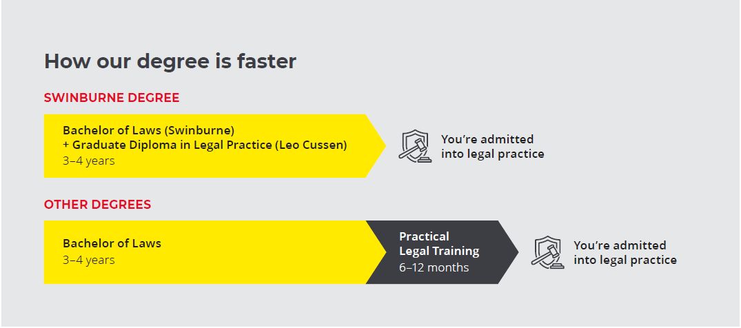 Dual award: Swinburne law degree + Graduate Diploma in Legal Practice (Leo Cussen)