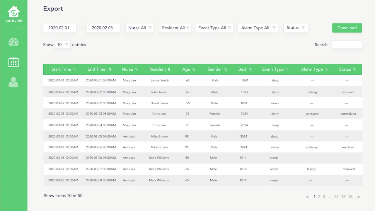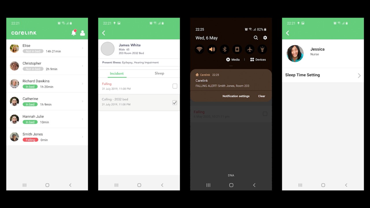 Via Carelink’s software application, aged care staff can receive notifications for any alerts detected through the mattress, such as a resident falling out of bed. The software app also includes each resident’s:
