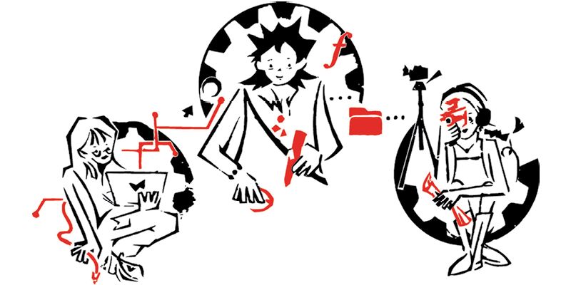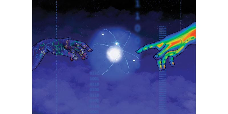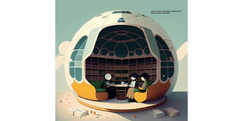 Artwork description: "Inspired by the collaboration thriving within our community and the boundless possibilities of the technology on campus, the illustration depicts the dynamic synergy between human creativity and technological innovation. Portraying an evolving community, it captures the vibrant environment where individuals from diverse backgrounds, each bringing a unique idea and perspective to the collaborative table. Encouraging the community to immerse themselves in the limitless possibilities of creativity."