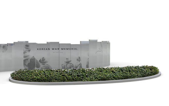 - Winding pathway flanked by imagery reminds visitors of fallen soldiers in Korean War