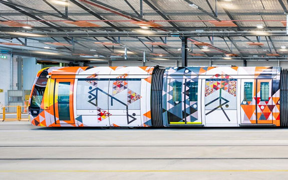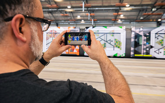 Running along Melbourne’s Route 96 from East Brunswick to St Kilda Beach, the tram has been designed by games and interactivity senior lecturer Dr Troy Innocent. The artwork features a geometric design that incorporates augmented reality technology.