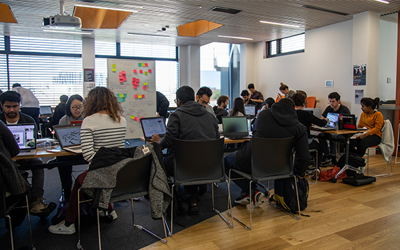 Cross-disciplinary students working in teams at Swinburne Innovation Hub.
