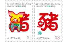 The $3 and $1 stamps featuring the Chinese calligraphic character for the Pig and its pictorial representation complete Australia Post’s current Lunar New Year 12-design series.