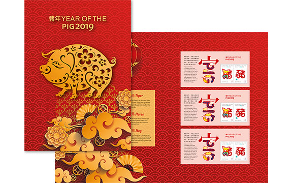 “The Pig minisheet design shows that in ancient times a Chinese family home only seemed complete when it included a pig, because the pig’s plump appearance was seen as a symbol of happiness and plenty,” says Ms Poon.