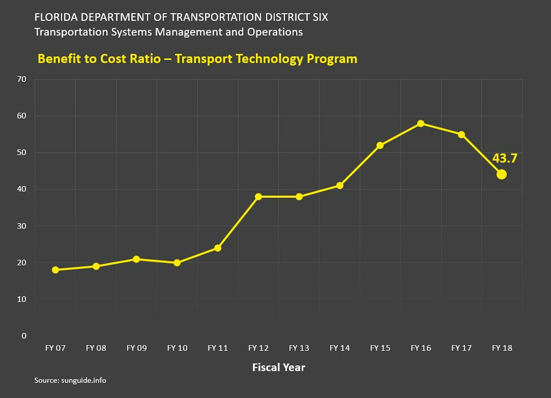 Benefit-cost ratios of transport technology solutions implemented over a decade by Florida Department of Transportation. Author provided.