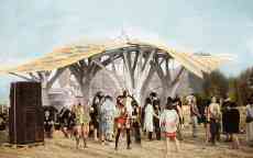 - The pavilion design features mycelium tree-like structures and celebrates craft and engineering practice