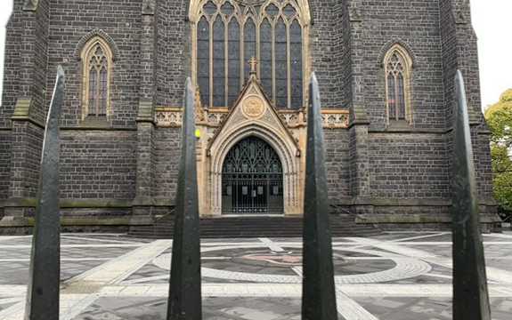 Cardinal Pell's lawyers said his practice of greeting churchgoers at the steps of St Patrick's Cathedral meant he could not have done what he was accused of. (ABC News: Karen Percy)
