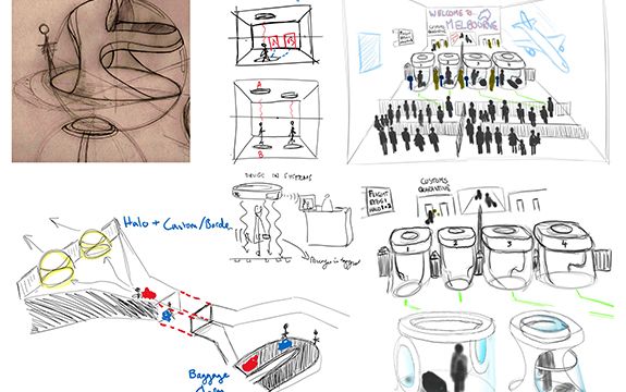 The HALO is a conceptual design for an Australian Border Security checkpoint at Melbourne Airport in the year 2030. It combines immigration, customs and declaration into one holistic solution. It manages micro-imaging and scanning of incoming passengers, luggage, cargo and mail, and detects drugs crossing Australian borders via airports. HALO ensures that no human intervention or negligence transpires in monitoring our borders.