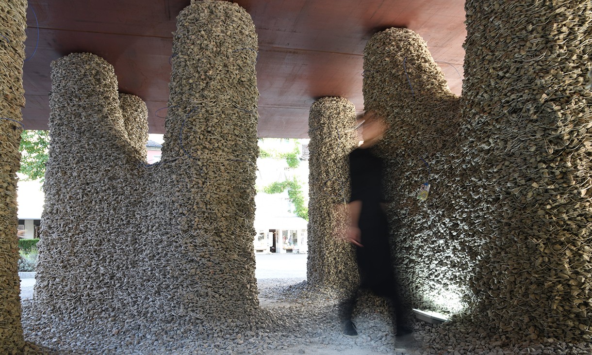 “We stacked alternating layers of loose stones and textile string, arranged in loops, to create three-metre-tall structures. In 2018, we built a large-scale loadbearing structure as part of a public outdoor exhibition called ‘Hello, Robot!’ at the Gewerbemuseum Winterthur. The structure was assembled with a mobile robotic arm programmed in collaboration with researchers at ETH Zurich,” she says.