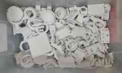 Architectural design rapid prototypes printed from waste plastics, ready to be recycled again. Image supplied by Daniel Prohasky.