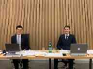 Connor Morgan (right) and Elliott Mann (left) competed in the oral rounds of the 2021 Oxford International Intellectual Property Moot