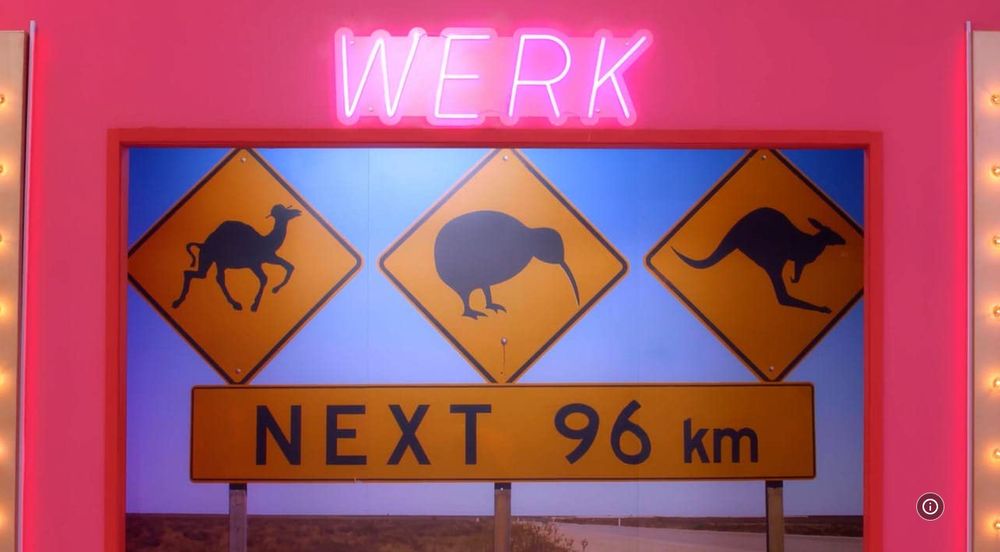 Drag Race Down Under’s trailer directly invokes imagery from Priscilla, positioning the flamboyant contestants against a desert highway with a yellow road sign warning of kangaroos.