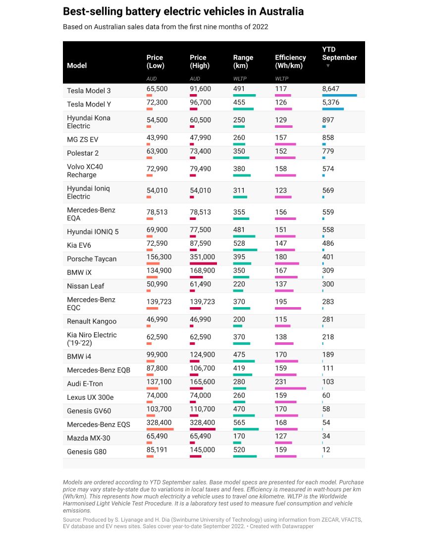 Despite all the benefits, electric vehicle uptake in Australia is still low. They accounted for just 3.39% of new vehicle sales (or 26,356 cars in total) to September this year, according to the Electric Vehicle Council of Australia.