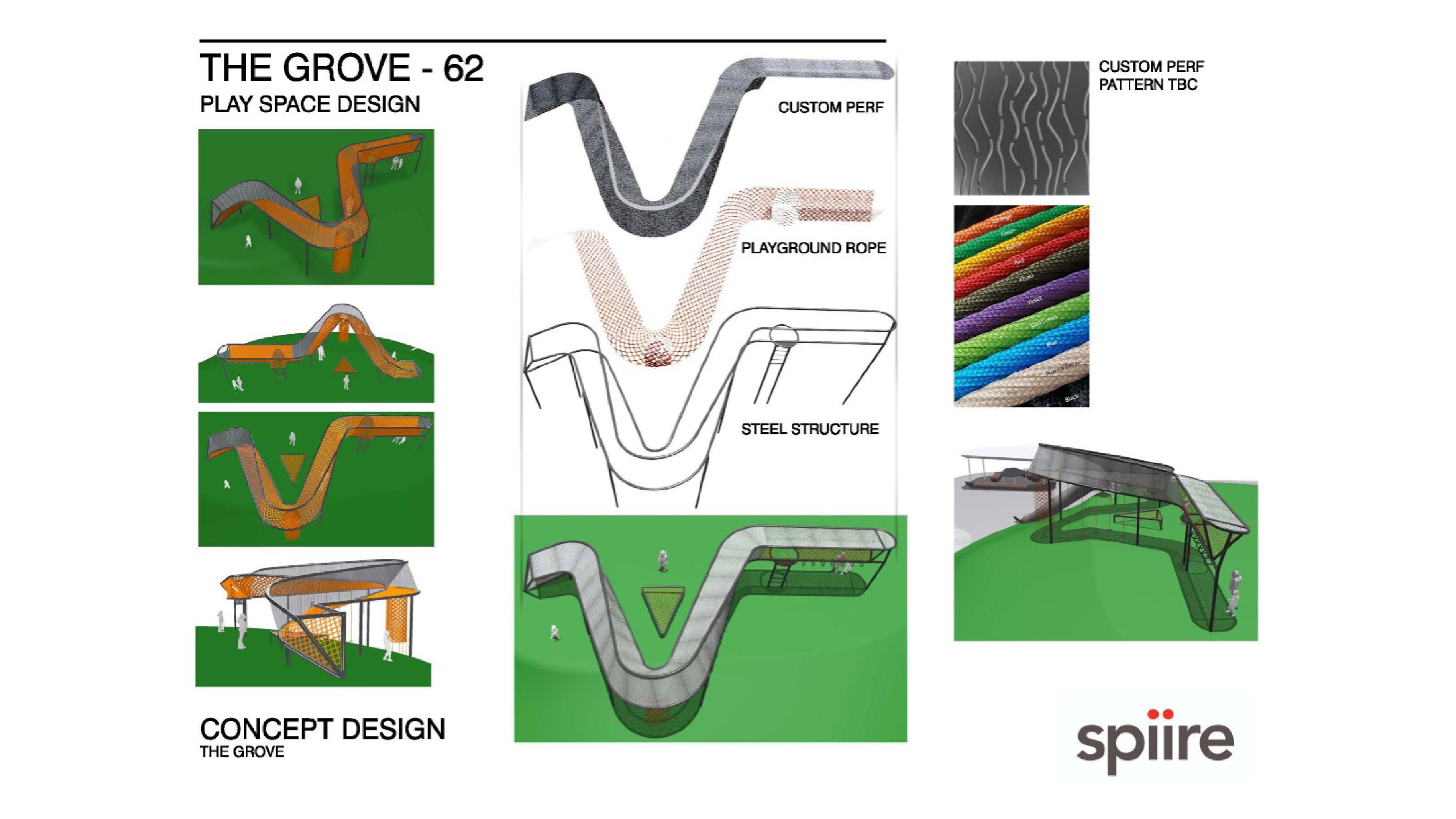 Steve’s most recent installation for Spiire, ‘The Grove’ incorporates gumnut inspired structures and equipment fully integrated into a playground and community area.