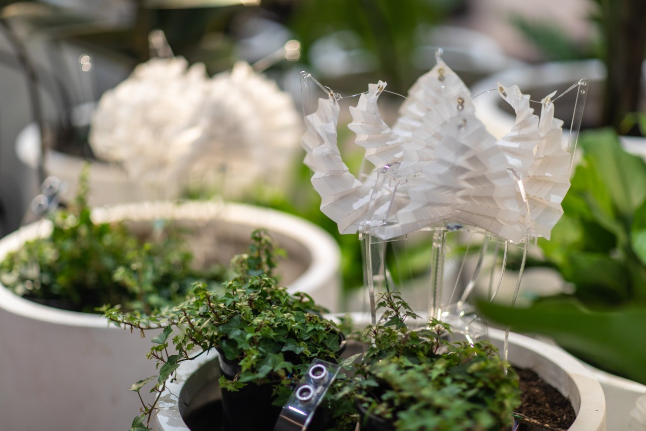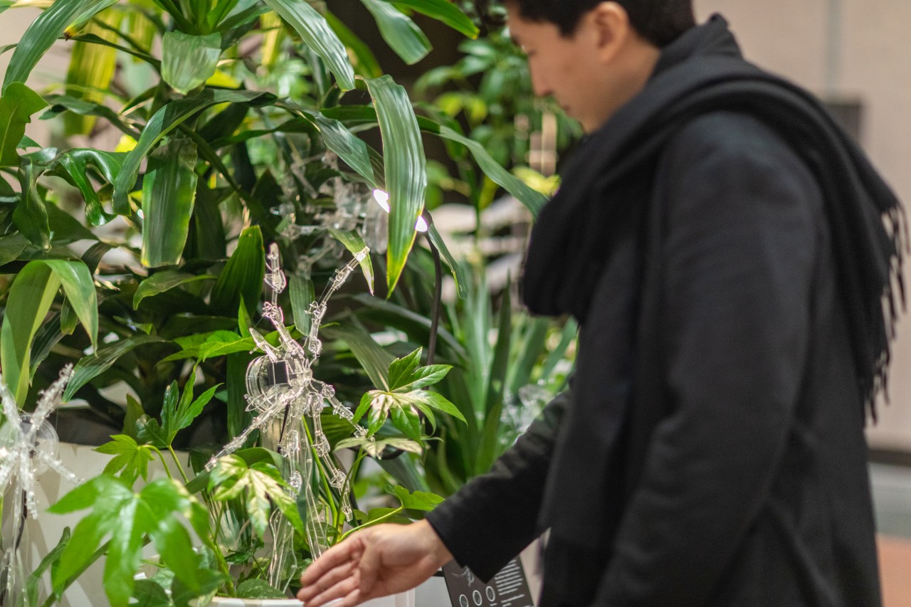 They used programming to connect the bionic elements to ultrasonic sensors that measured distance and movement, making the plants react when someone approached.