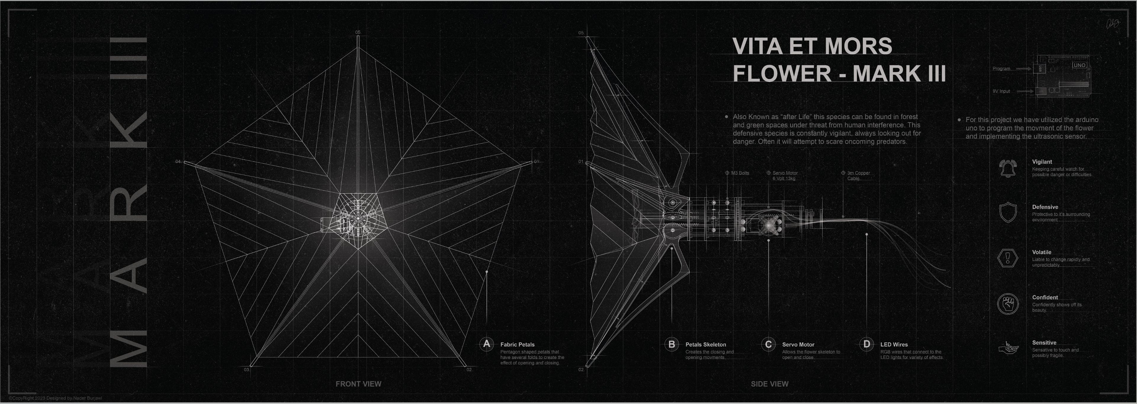 ’Vita Et Mors,’ or the ‘After Life Flower’ is designed to respond to movement and scare potential “predators” .