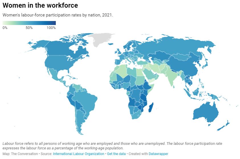 This is now the norm in only a small number of societies. It seems unlikely the trend in women’s workforce participation will reverse in the next 40 years.