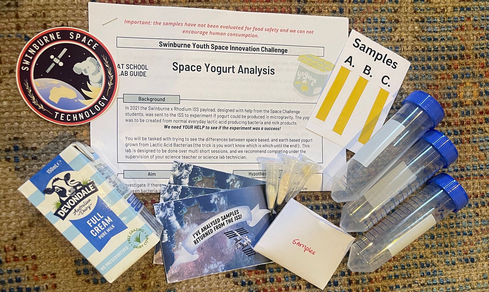 All participating schools received special analysis kits with samples returned from a previous Swinburne payload that sent yoghurt into space. Each kit contains freeze-dried samples of the space yoghurt along with two samples from Earth. The students will grow their samples at school, investigate their properties and try to figure out which sample came from space.