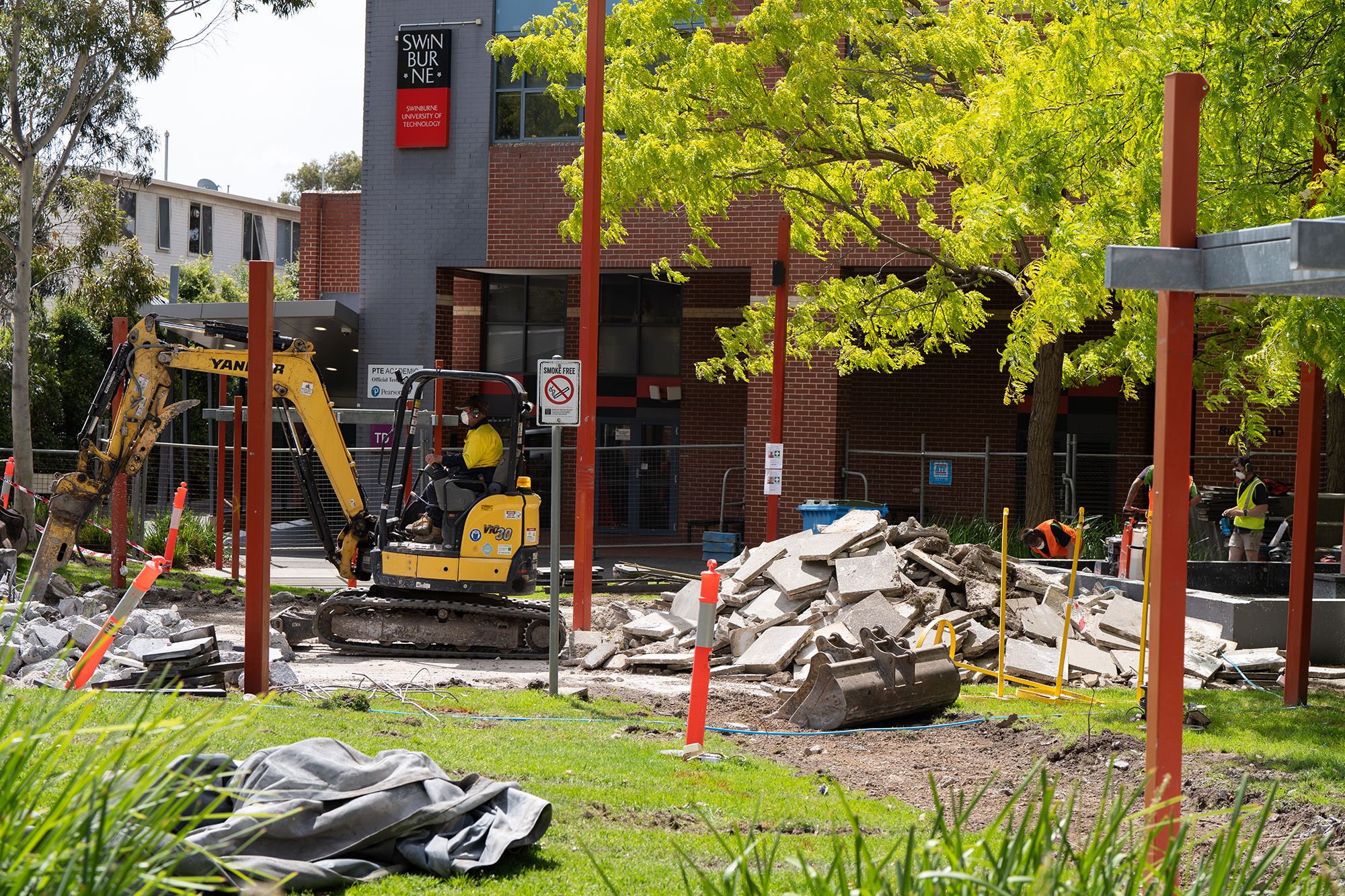 Work has begun on our Indigenous Learning Circles, to be completed before semester 1, 2024. Image: Marcus Lee, Swinburne Photomedia student.