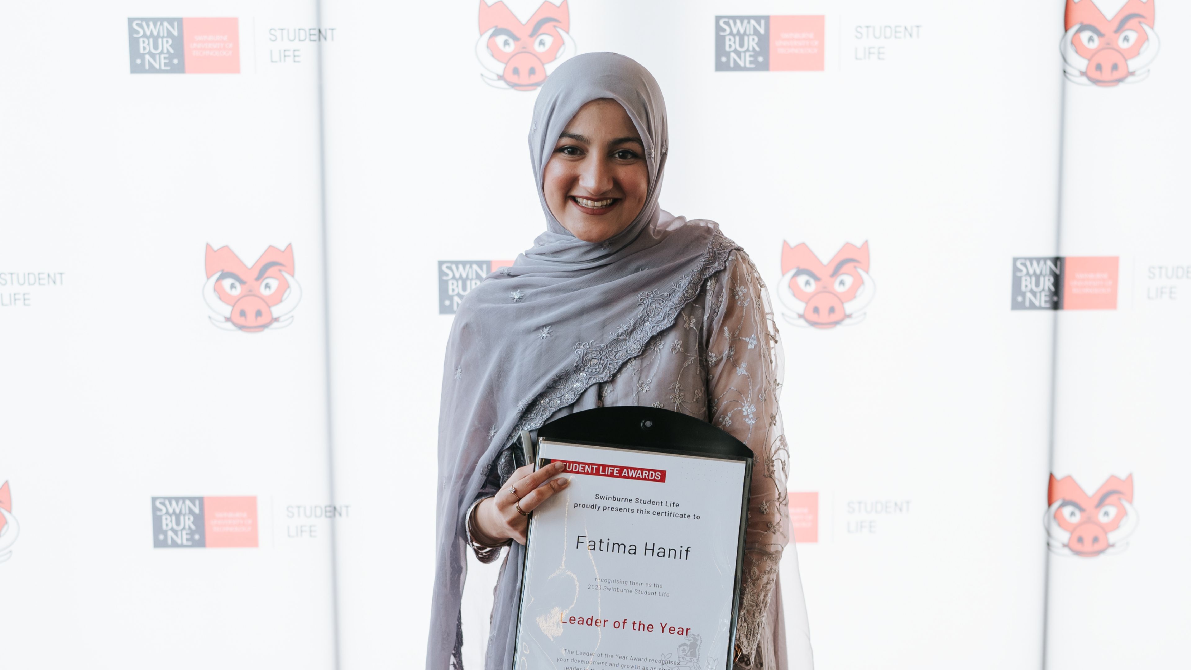 - 2023 Leader of the Year Award Winner Fatima Hanif says their club experiences have given them a sense of pride in being a Swinburne student