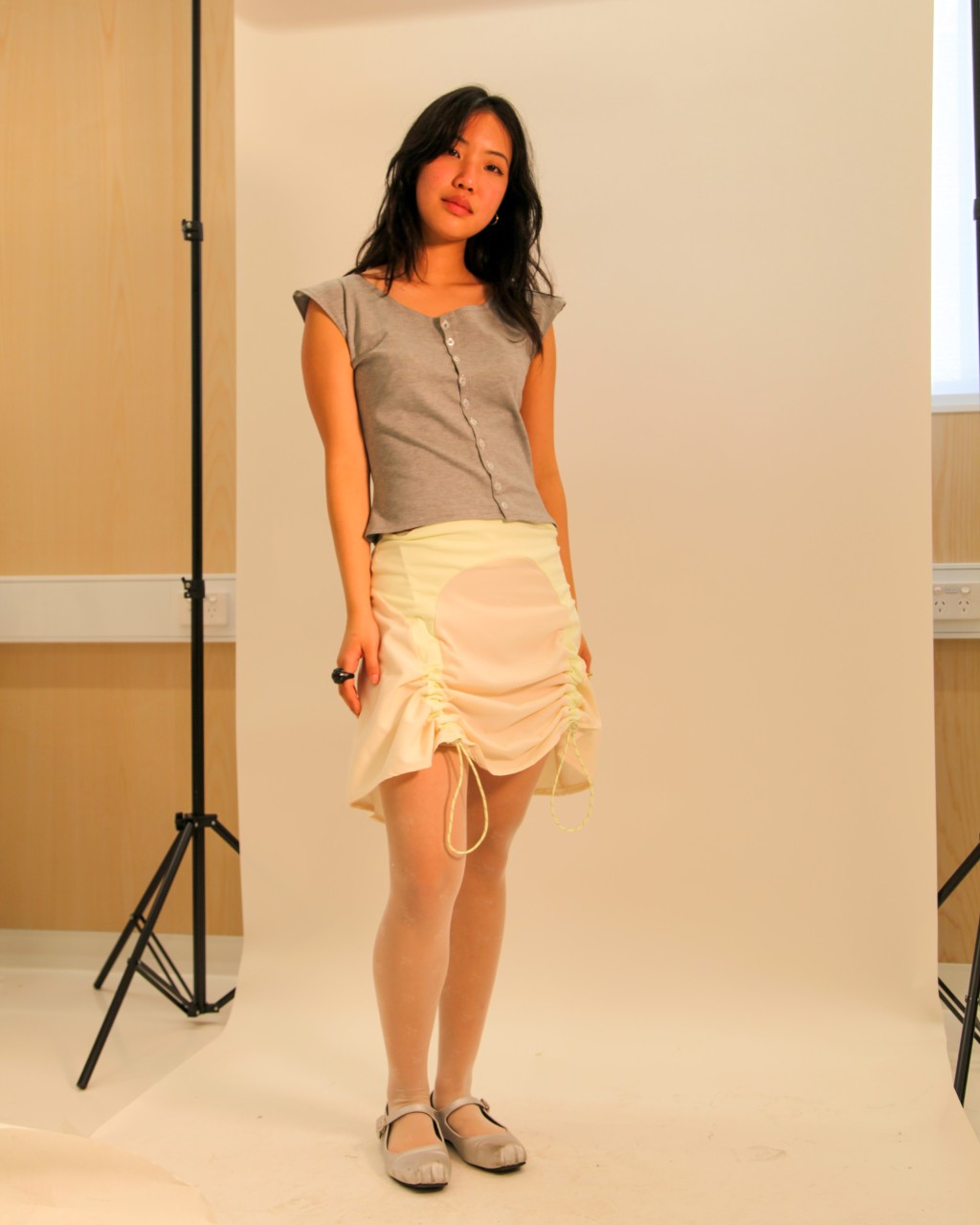 The course kicked off at the beginning of 2025 with Swinburne’s first ever Fashion unit, Fashion Design Practice 1: Techniques and Prototyping. The unit recently wrapped with all 26 students presenting a garment they each developed over the semester. The unit introduced students to the core fundamentals of sewing, pattern making and design development, skills that are new to many of the cohort.