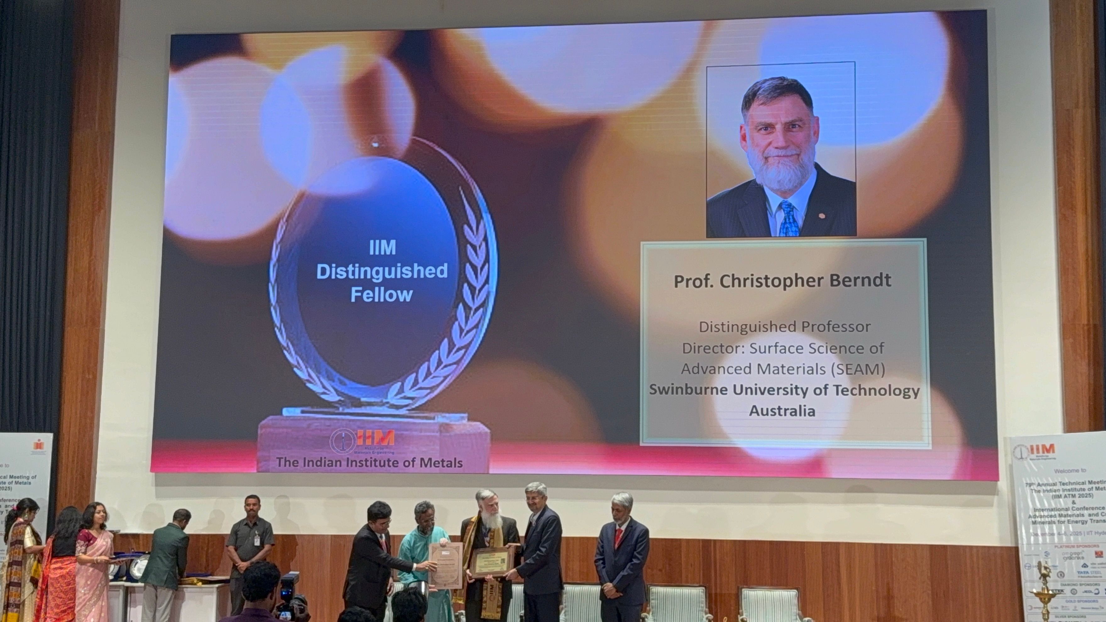 Swinburne’s Distinguished Professor Christopher Berndt has been selected by the Indian Institute of Metals (IIM) as a 2025 Distinguished Fellow, one of the most prestigious awards of the Institute.