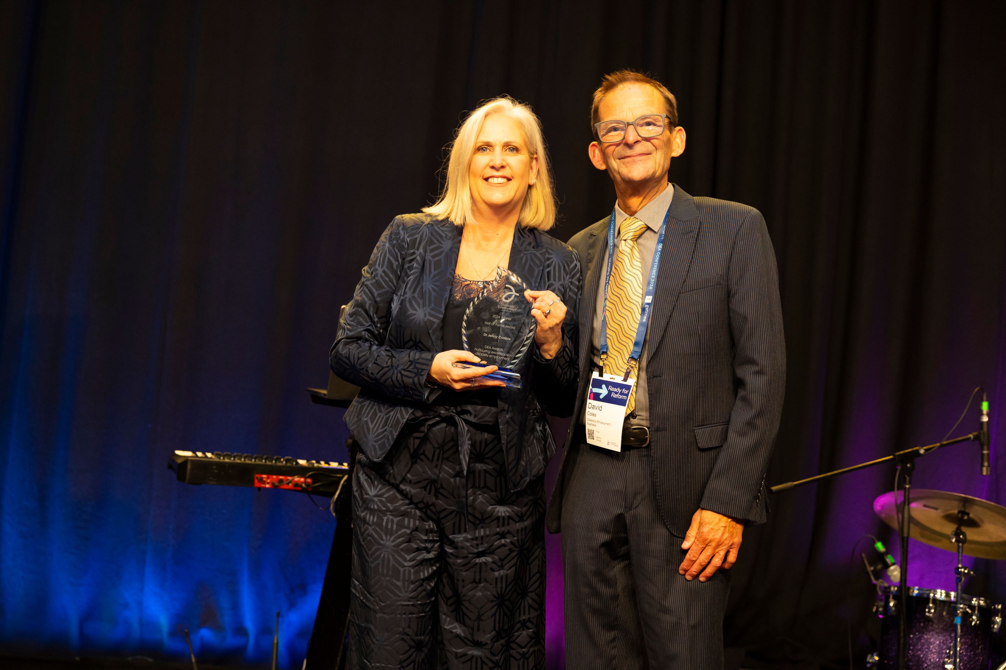 Dr Crosbie receives her award at the Disability Employment National Conference in Melbourne, 12 June 2024. Image credit: Melissa Hobbs