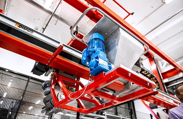 Students being shown the large-scale 6-axis gantry 3D concrete printer; ideal for large and complex structural shapes with its 5 degrees of freedom. -