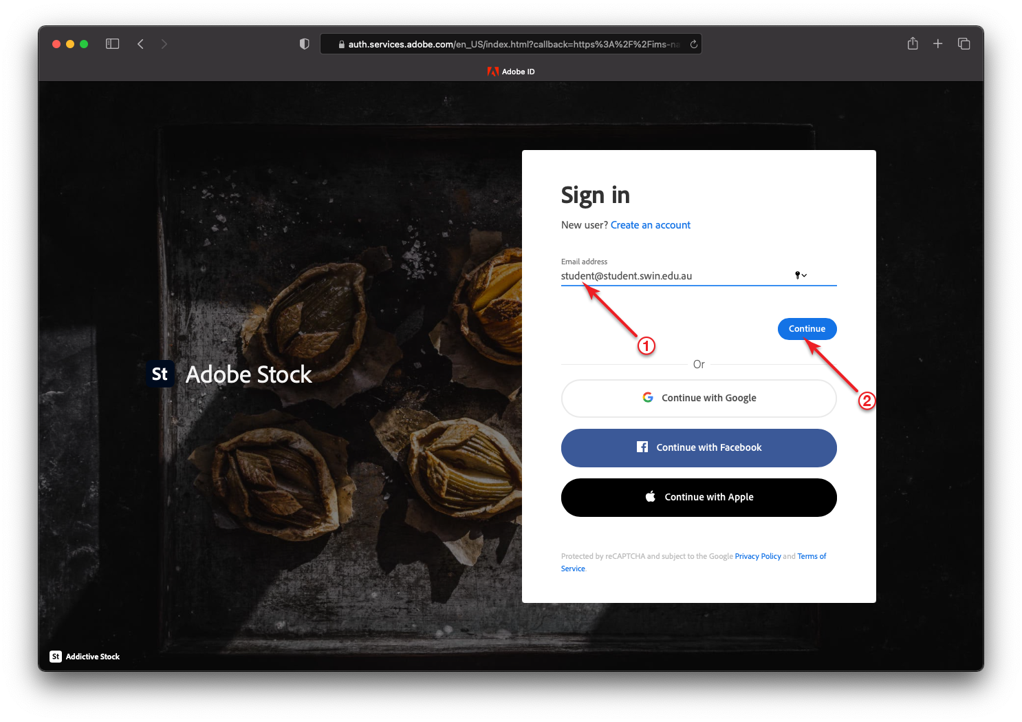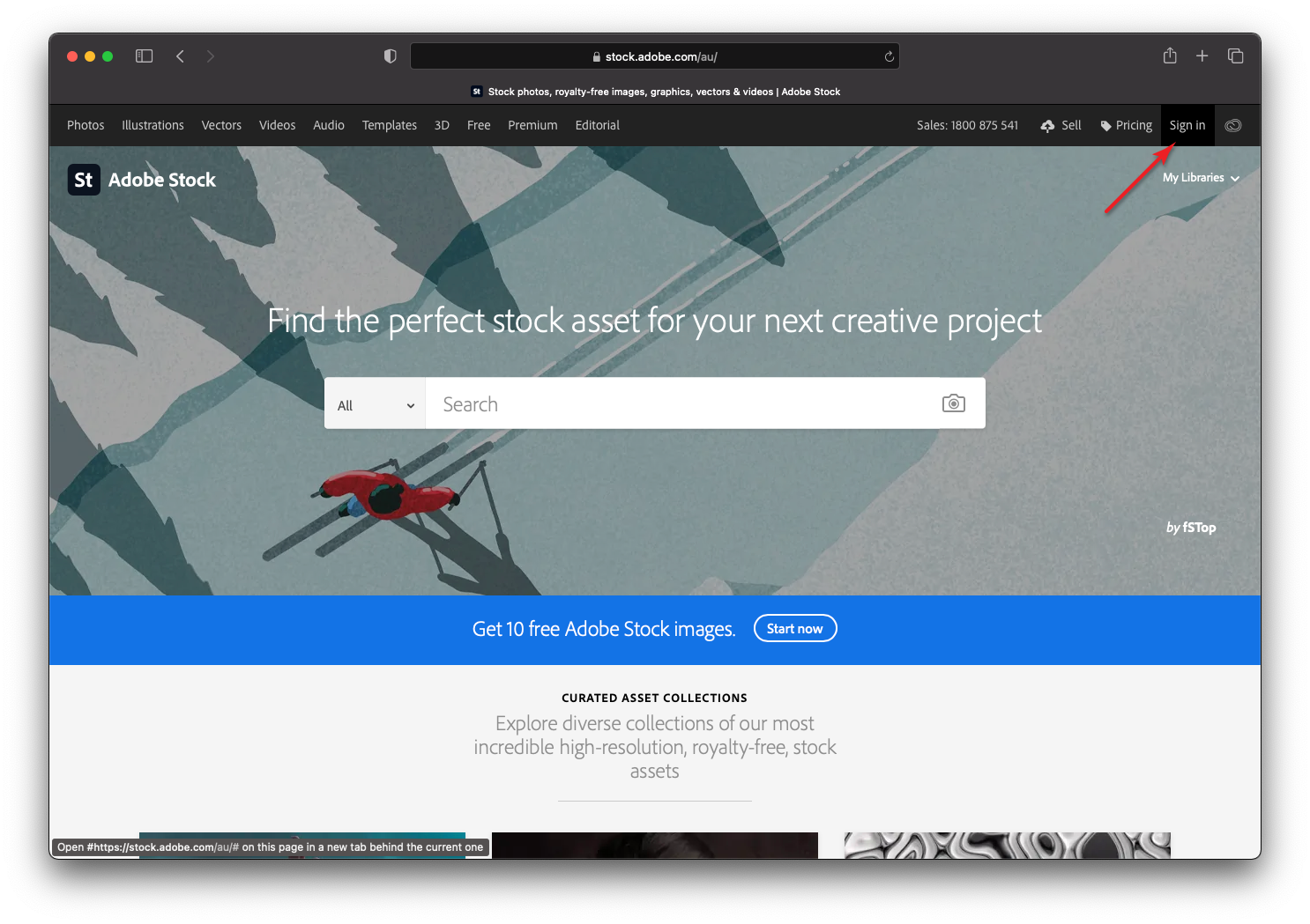 Visit the Adobe Stock website at https://stock.adobe.com/ and click on the Sign in link