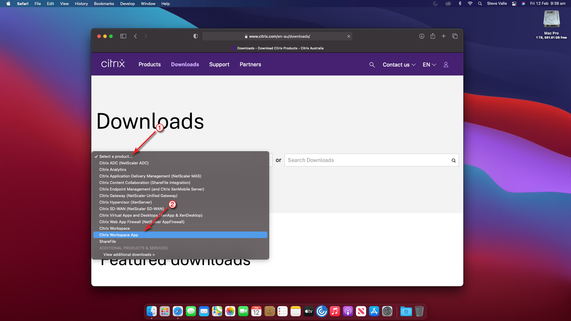 Click on the Select a Product dropdown menu and select Citrix Workspace App