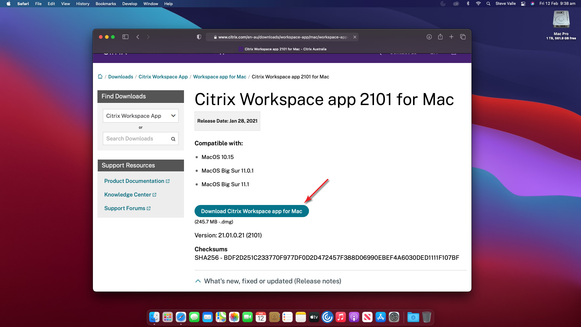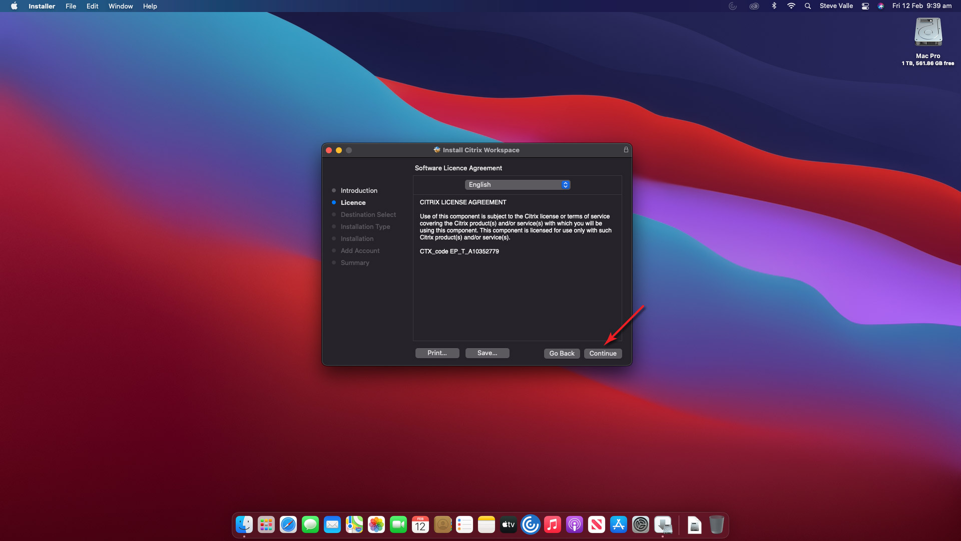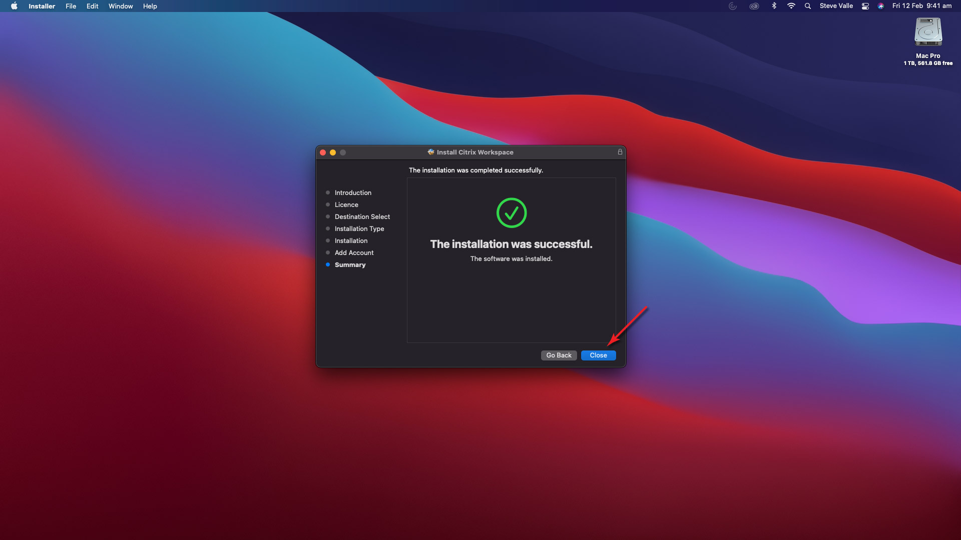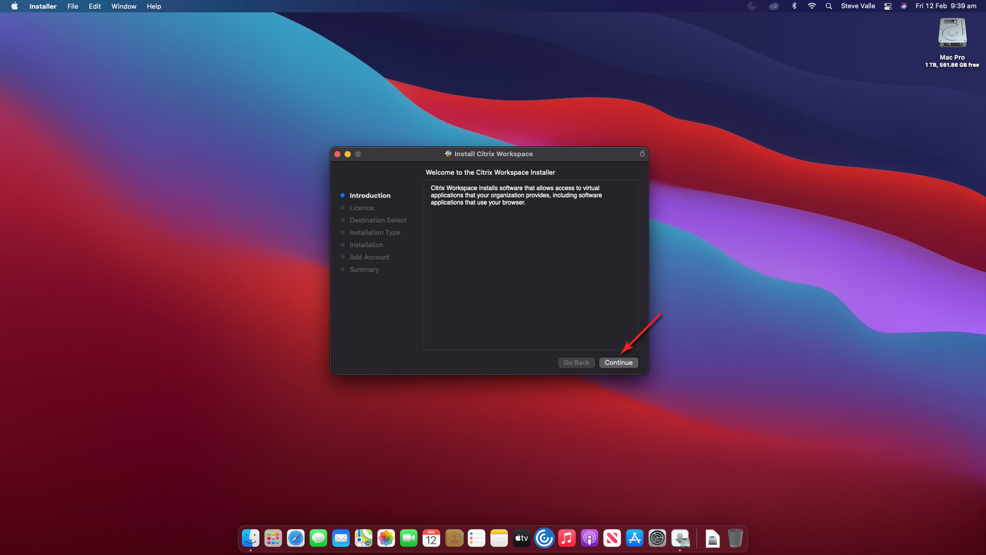 Click on the Download Citrix Workspace app for Mac button to download the installer