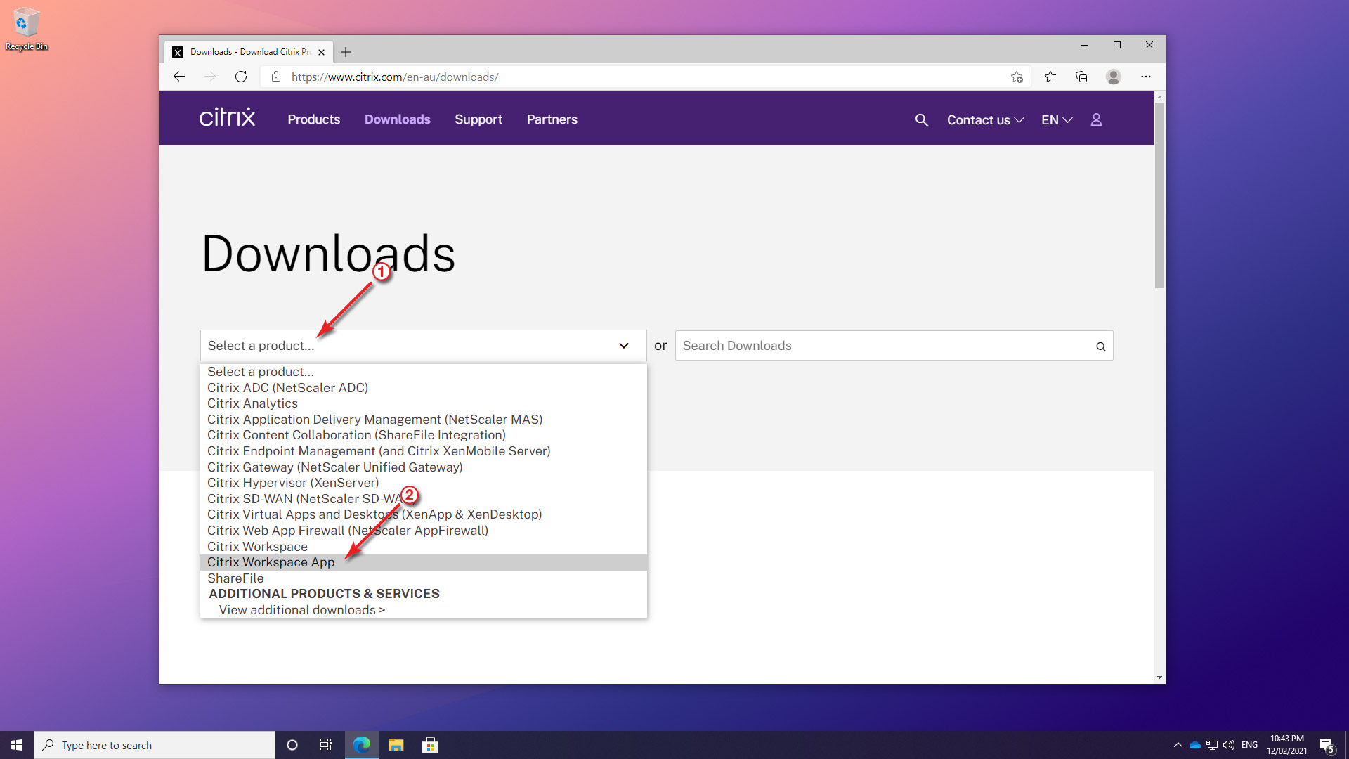 Click on the Select a Product dropdown menu and select Citrix Workspace App