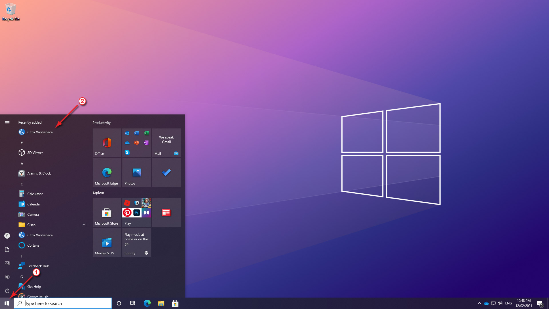 Minimise or quit out of your web browser and click on the Start menu, then on