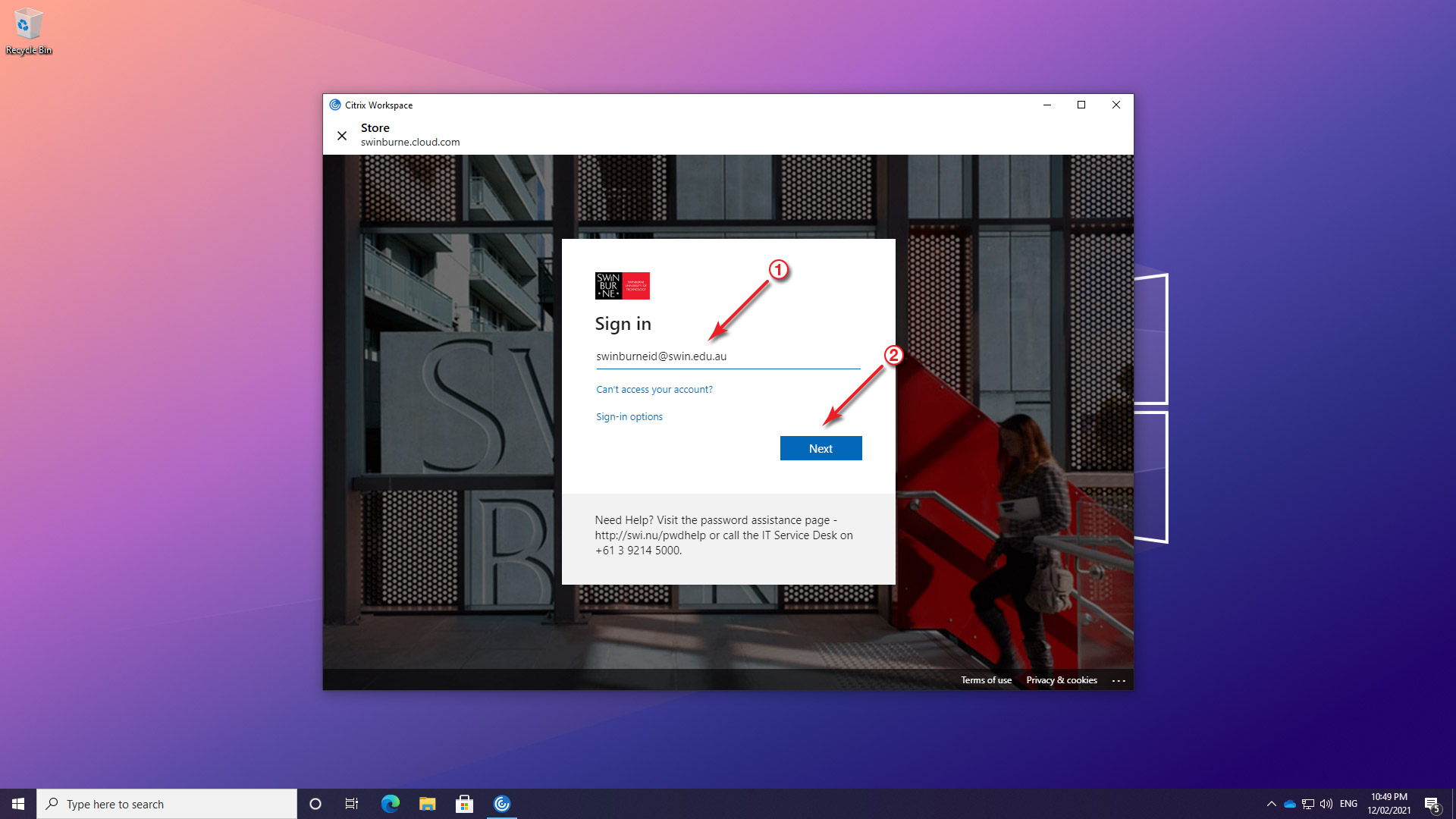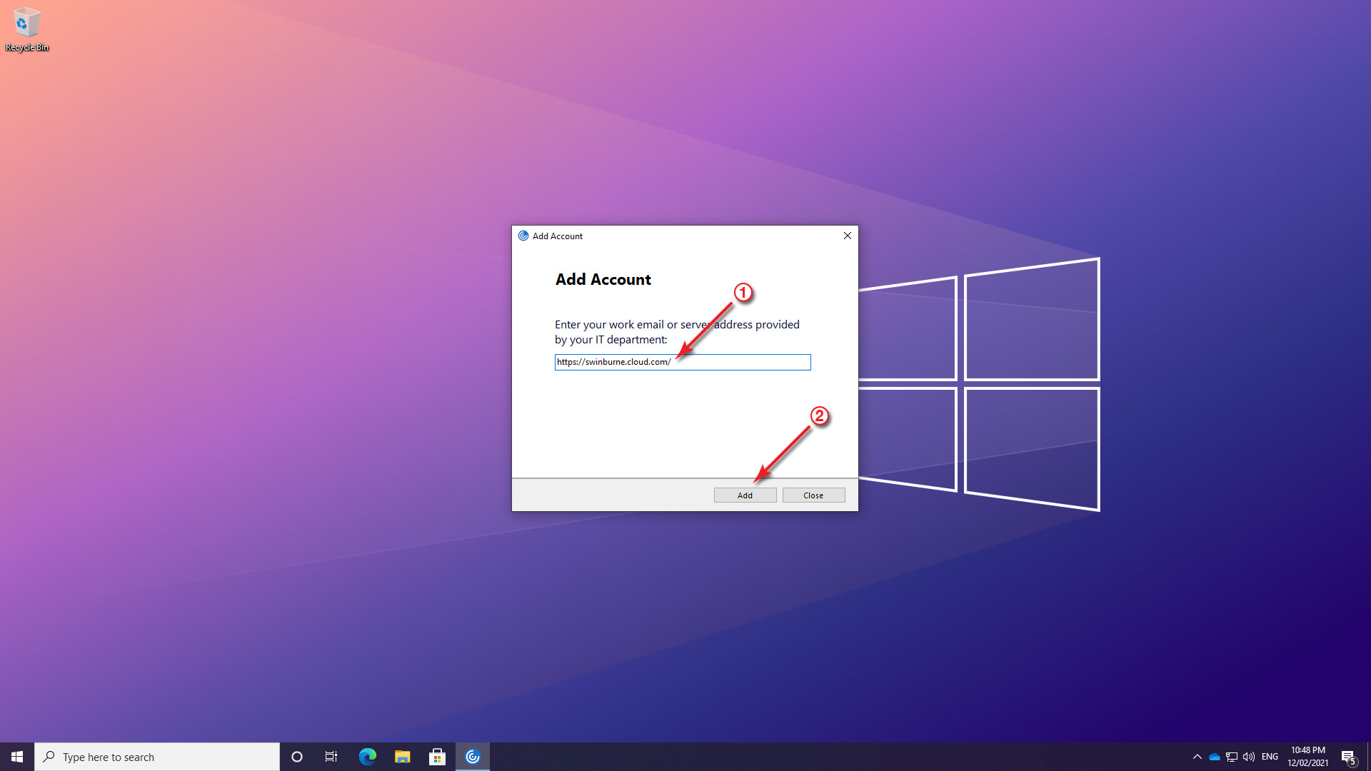 In the field provided, type https://swinburne.cloud.com/ and click on the Add